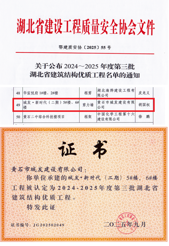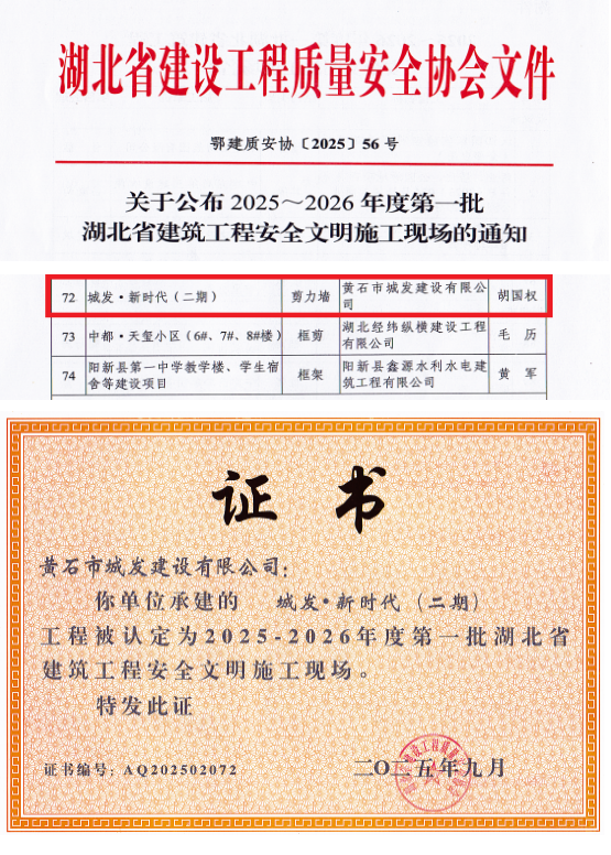 近日,黃石市城發(fā)建設(shè)有限公司承建的城發(fā)·新時(shí)代(二期)項(xiàng)目喜獲殊榮,被認(rèn)定為2024至2025年度第三批湖北省建筑結(jié)構(gòu)優(yōu)質(zhì)工程和2025-2026年度第一批湖北省建筑工程安全文明施工現(xiàn)場。這一成就不僅彰顯了項(xiàng)目部的卓越管理能力,更標(biāo)志著城發(fā)建工集團(tuán)在打造高品質(zhì)人居標(biāo)桿的道路上邁出了堅(jiān)實(shí)一步。