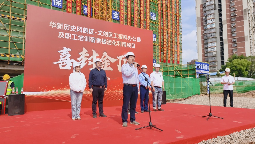 封頂大吉!華新歷史風(fēng)貌區(qū)·文創(chuàng)區(qū)工程科 辦公樓及職工培訓(xùn)宿舍樓活化利用項(xiàng)目 主體結(jié)構(gòu)封頂