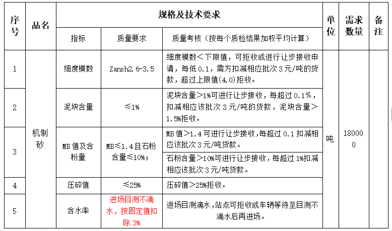 交貨期:要求所有水洗機制砂供應(yīng)滿足生產(chǎn)需求。