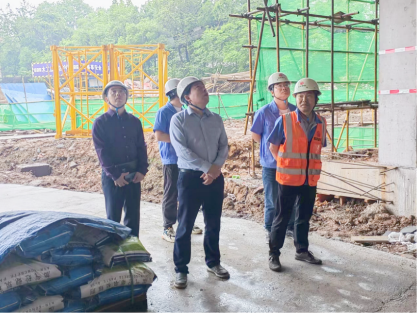 圖為呂紹成同志帶隊(duì)檢查華新湖北美院創(chuàng)新示范基地宿舍樓項(xiàng)目