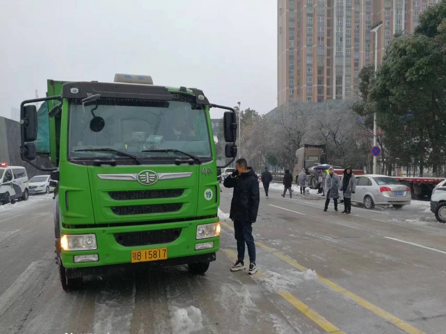 ▲城發(fā)渣土公司經(jīng)理張?jiān)乓匝榱?、迅速組織應(yīng)急隊(duì)伍,投入2臺(tái)裝載機(jī)協(xié)助市政府開(kāi)展高速路口清雪行動(dòng)。